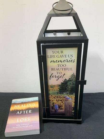 LOT 152 - Sympathy lot, lantern with flameless candle & healing after loss book