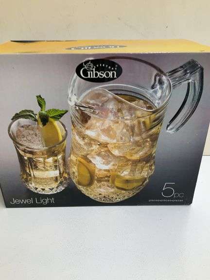 LOT 47 - Gibson 5 pc pitcher and glasses set